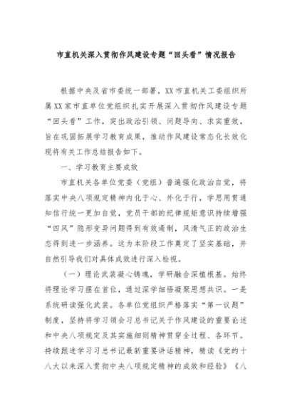 / 【七哥公文】2025年:市直机关深入贯彻作风建设专题“回头看”情况报告+更多免费公文+VX:QiGeGongWen2024