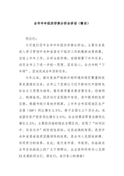 / 【七哥公文】2025年:全市半年经济形势分析会讲话(精品)+更多免费公文+VX:QiGeGongWen2024