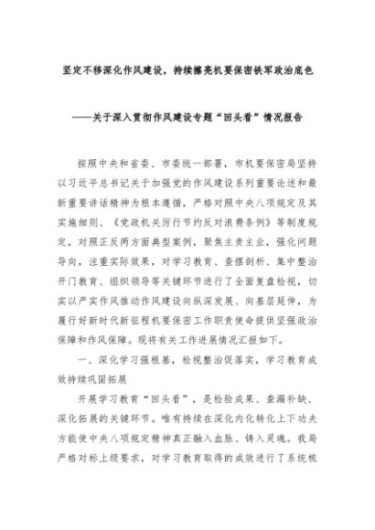 【七哥公文】2025年:坚定不移深化作风建设,持续擦亮机要保密铁军政治底色——关于深入贯彻作风建设专题“回头看”情况报告+更多免费公文+VX:QiGeGongWen2024