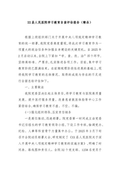 / 【七哥公文】2025年:XX县人民医院学习教育自查评估报告(精品)+更多免费公文+VX:QiGeGongWen2024