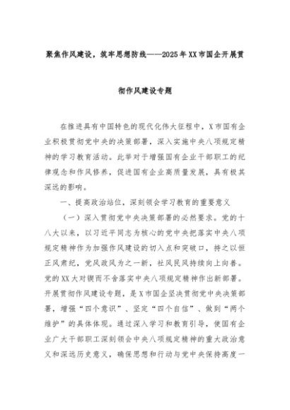 【七哥公文】2025年:聚焦作风建设,筑牢思想防线——2025年XX市国企开展贯彻作风建设专题+更多免费公文+VX:QiGeGongWen2024