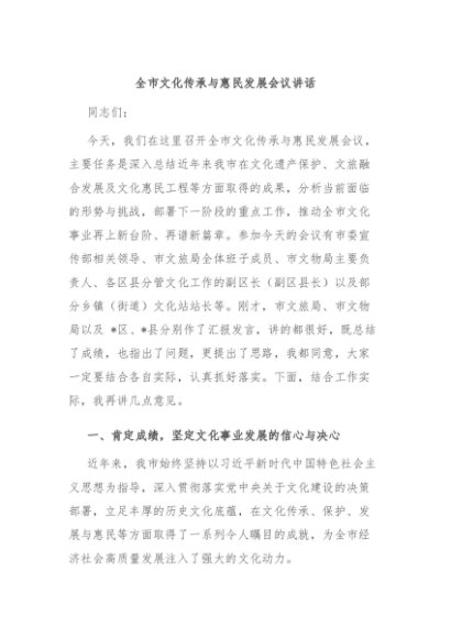/ 【七哥公文】2025年:全市文化传承与惠民发展会议讲话+更多免费公文+VX:QiGeGongWen2024