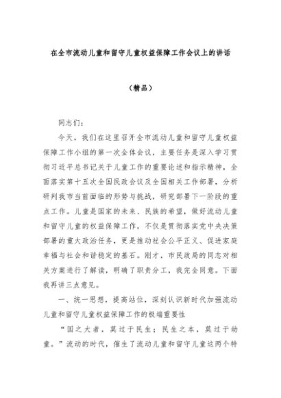 【七哥公文】2025年:在全市流动儿童和留守儿童权益保障工作会议上的讲话(精品)+更多免费公文+VX:QiGeGongWen2024