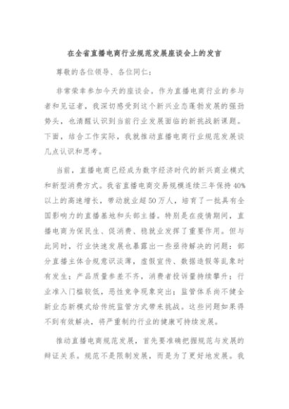【七哥公文】2025年:在全省直播电商行业规范发展座谈会上的发言+更多免费公文+VX:QiGeGongWen2024