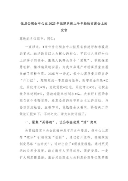 【七哥公文】2025年:住房公积金中心在2025年住建系统上半年经验交流会上的发言+更多免费公文+VX:QiGeGongWen2024
