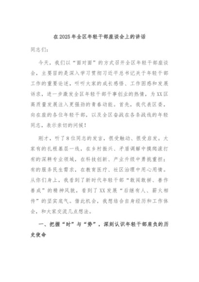 / 【七哥公文】2025年:在2025年全区年轻干部座谈会上的讲话+更多免费公文+VX:QiGeGongWen2024