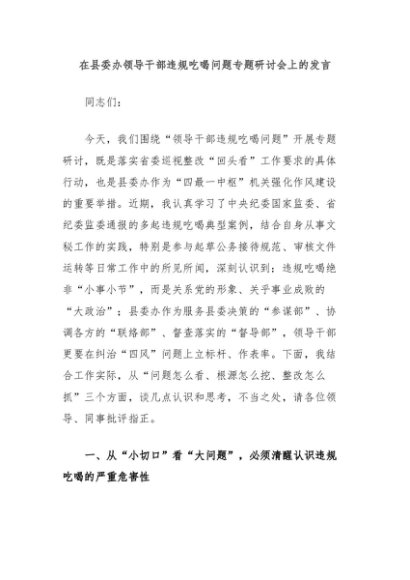 / 【七哥公文】2025年:在县委办领导干部违规吃喝问题专题研讨会上的发言+更多免费公文+VX:QiGeGongWen2024