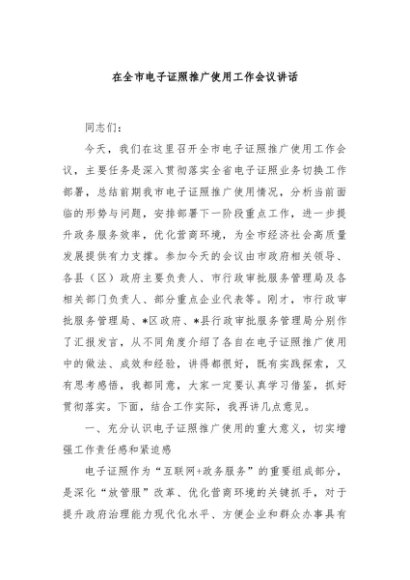 / 【七哥公文】2025年:在全市电子证照推广使用工作会议讲话+更多免费公文+VX:QiGeGongWen2024