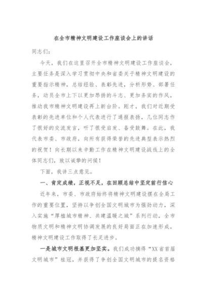 / 【七哥公文】2025年:在全市精神文明建设工作座谈会上的讲话+更多免费公文+VX:QiGeGongWen2024