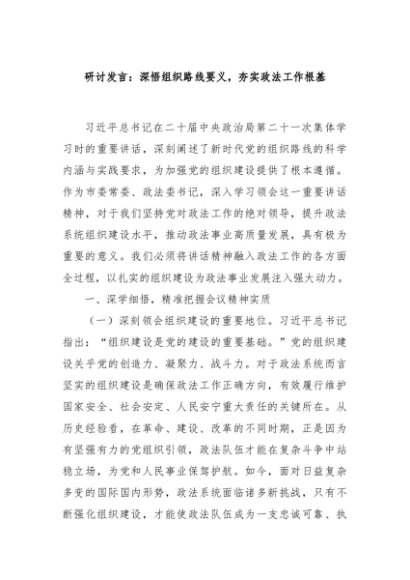 / 【七哥公文】2025年:研讨发言:深悟组织路线要义,夯实政法工作根基+更多免费公文+VX:QiGeGongWen2024