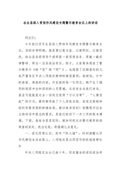 / 【七哥公文】2025年:在全县深入贯彻作风建设专题警示教育会议上的讲话+更多免费公文+VX:QiGeGongWen2024