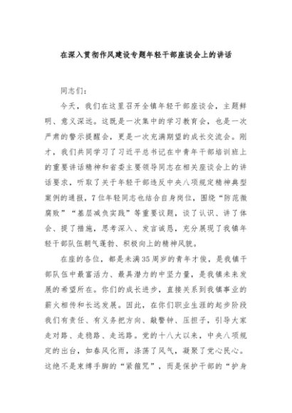 / 【七哥公文】2025年:在深入贯彻作风建设专题年轻干部座谈会上的讲话+更多免费公文+VX:QiGeGongWen2024