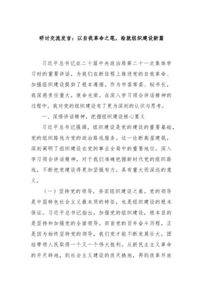 / 【七哥公文】2025年:研讨交流发言:以自我革命之笔,绘就组织建设新篇+更多免费公文+VX:QiGeGongWen2024