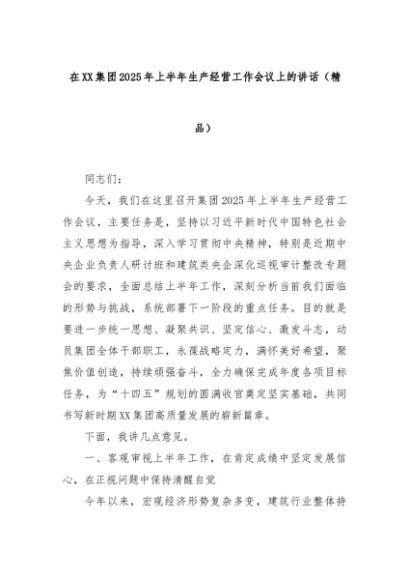 【七哥公文】2025年:在XX集团2025年上半年生产经营工作会议上的讲话(精品)+更多免费公文+VX:QiGeGongWen2024