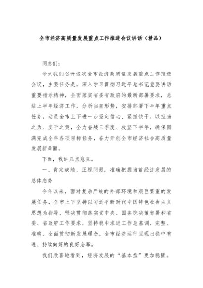 / 【七哥公文】2025年:全市经济高质量发展重点工作推进会议讲话(精品)+更多免费公文+VX:QiGeGongWen2024