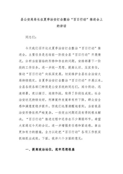【七哥公文】2025年:县公安局局长在夏季治安打击整治“百日行动”推进会上的讲话+更多免费公文+VX:QiGeGongWen2024
