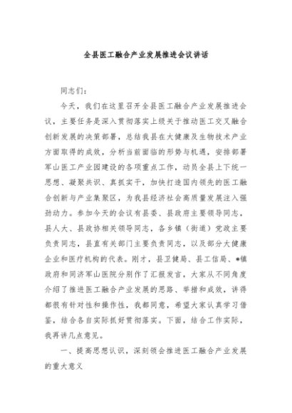 / 【七哥公文】2025年:全县医工融合产业发展推进会议讲话+更多免费公文+VX:QiGeGongWen2024