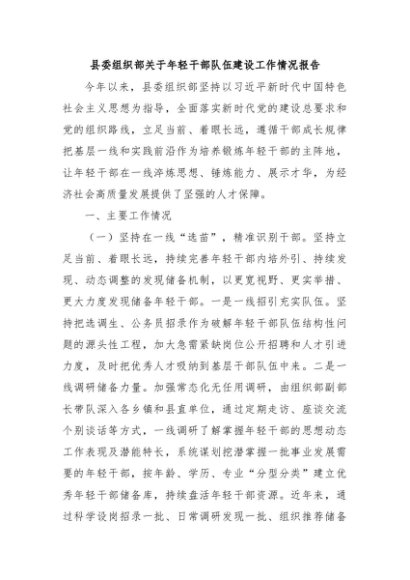 / 【七哥公文】2025年:县委组织部关于年轻干部队伍建设工作情况报告+更多免费公文+VX:QiGeGongWen2024