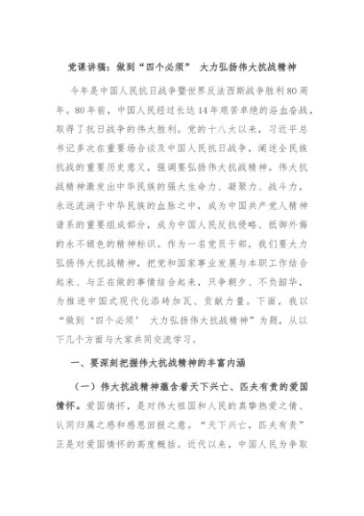 / 【七哥公文】2025年:党课讲稿:做到“四个必须” 大力弘扬伟大抗战精神+更多免费公文+VX:QiGeGongWen2024