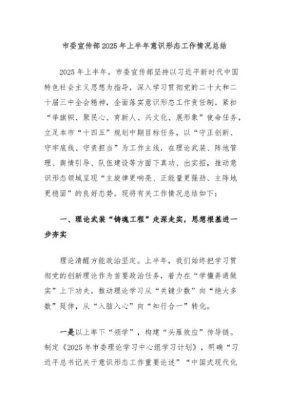 / 【七哥公文】2025年:市委宣传部2025年上半年意识形态工作情况总结+更多免费公文+VX:QiGeGongWen2024