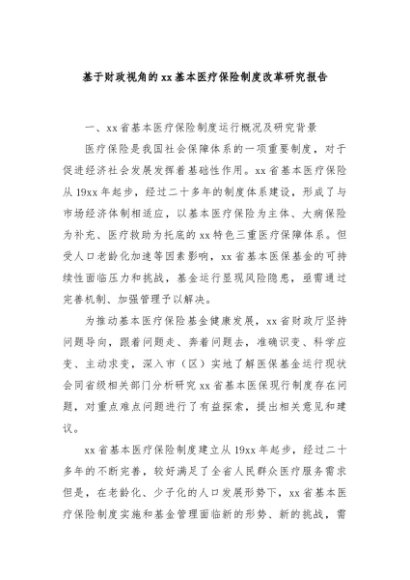 / 【七哥公文】2025年:基于财政视角的xx基本医疗保险制度改革研究报告+更多免费公文+VX:QiGeGongWen2024
