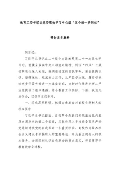 【七哥公文】2025年:教育工委书记在党委理论学习中心组“五个进一步到位”研讨发言材料+更多免费公文+VX:QiGeGongWen2024