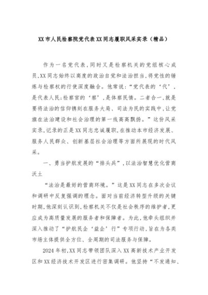 【七哥公文】2025年:XX市人民检察院党代表XX同志履职风采实录(精品)+更多免费公文+VX:QiGeGongWen2024