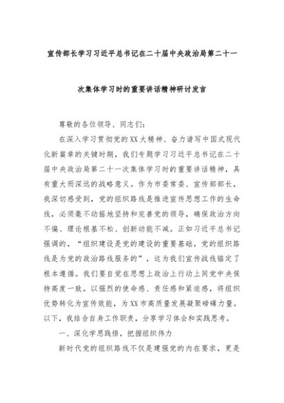 【七哥公文】2025年:宣传部长学习总书记在二十届中央政治局第二十一次集体学习时的重要讲话精神研讨发言+更多免费公文+VX:QiGeGongWen2024