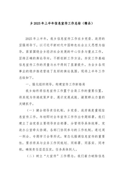 / 【七哥公文】2025年:乡2025年上半年信息宣传工作总结(精品)+更多免费公文+VX:QiGeGongWen2024