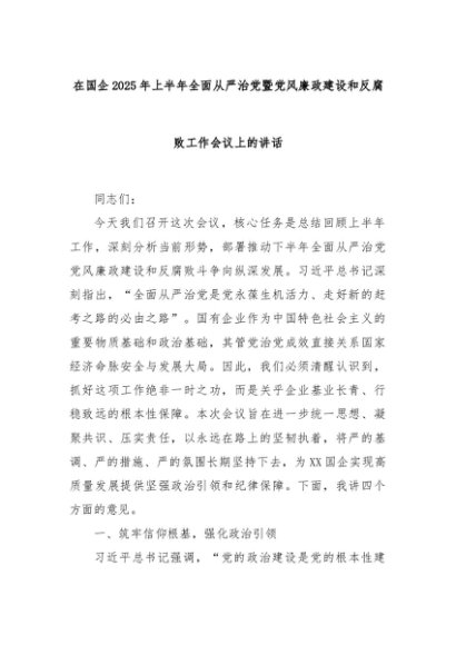 【七哥公文】2025年:在国企2025年上半年全面从严治党暨党风廉政建设和反腐败工作会议上的讲话+更多免费公文+VX:QiGeGongWen2024