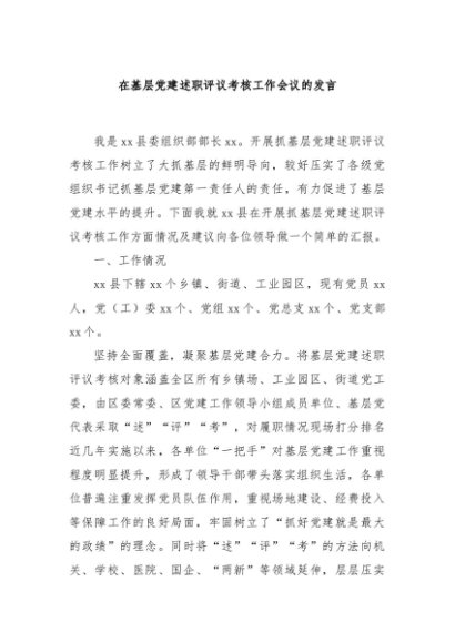 / 【七哥公文】2025年:在基层党建述职评议考核工作会议的发言+更多免费公文+VX:QiGeGongWen2024