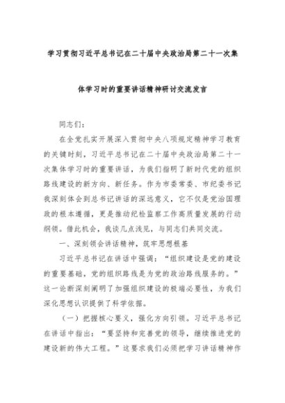 【七哥公文】2025年:学习贯彻总书记在二十届中央政治局第二十一次集体学习时的重要讲话精神研讨交流发言+更多免费公文+VX:QiGeGongWen2024