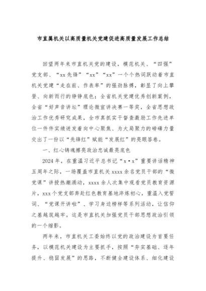 / 【七哥公文】2025年:市直属机关以高质量机关党建促进高质量发展工作总结+更多免费公文+VX:QiGeGongWen2024