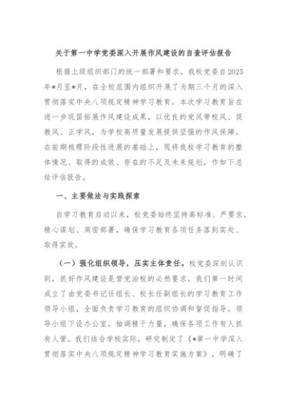/ 【七哥公文】2025年:关于第一中学党委深入开展作风建设的自查评估报告+更多免费公文+VX:QiGeGongWen2024