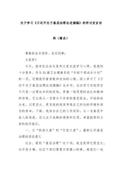 【七哥公文】2025年:关于学习《习近平关于基层治理论述摘编》的研讨发言材料(精品)+更多免费公文+VX:QiGeGongWen2024