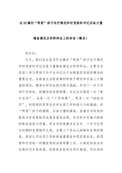 【七哥公文】2025年:在XX镇村“两委”班子运行情况和村党组织书记后备力量储备情况分析研判会上的讲话(精品)+更多免费公文+VX:QiGeGongWen2024