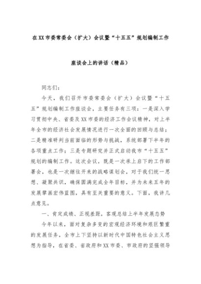 【七哥公文】2025年:在XX市委常委会(扩大)会议暨“十五五”规划编制工作座谈会上的讲话(精品)+更多免费公文+VX:QiGeGongWen2024