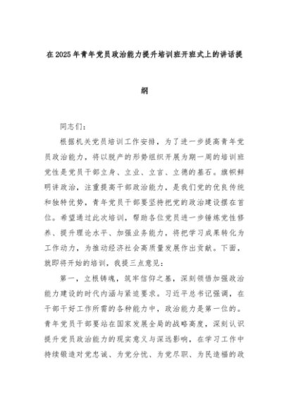 【七哥公文】2025年:在2025年青年党员政治能力提升培训班开班式上的讲话提纲+更多免费公文+VX:QiGeGongWen2024