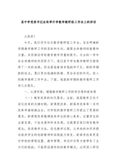 / 【七哥公文】2025年:县中学党委书记在秋季开学教学教研组工作会上的讲话+更多免费公文+VX:QiGeGongWen2024