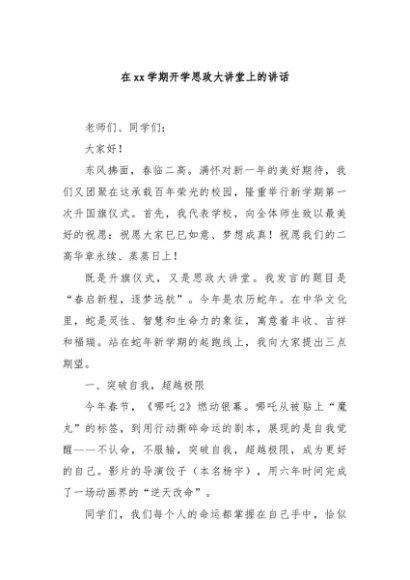 / 【七哥公文】2025年:在xx学期开学思政大讲堂上的讲话+更多免费公文+VX:QiGeGongWen2024