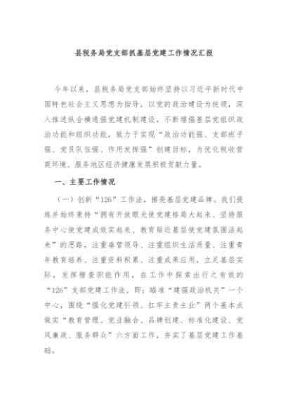 / 【七哥公文】2025年:县税务局党支部抓基层党建工作情况汇报+更多免费公文+VX:QiGeGongWen2024