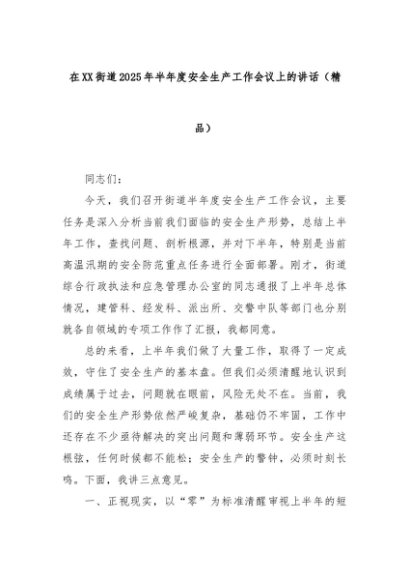 【七哥公文】2025年:在XX街道2025年半年度安全生产工作会议上的讲话(精品)+更多免费公文+VX:QiGeGongWen2024