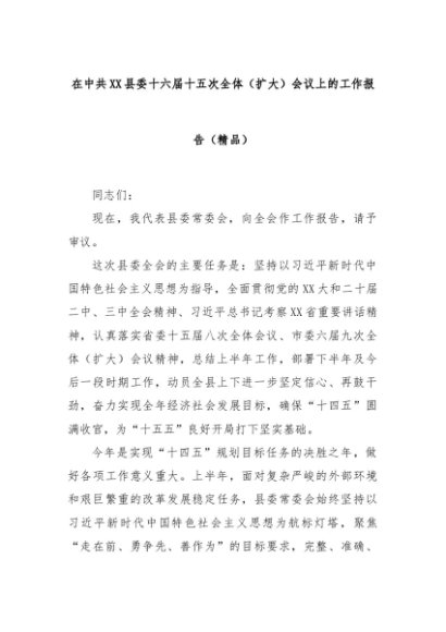 【七哥公文】2025年:在中共XX县委十六届十五次全体(扩大)会议上的工作报告(精品)+更多免费公文+VX:QiGeGongWen2024