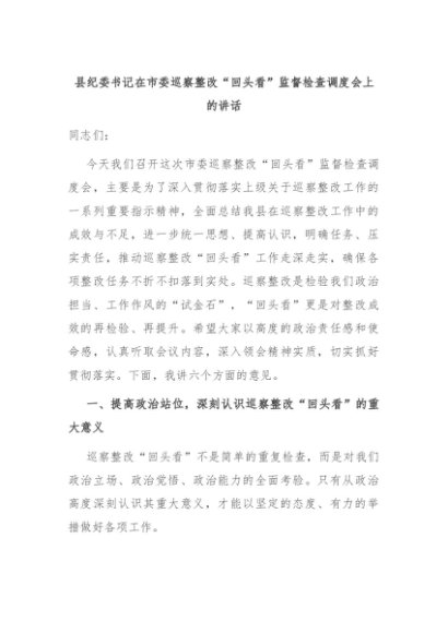 【七哥公文】2025年:县纪委书记在市委巡察整改“回头看”监督检查调度会上的讲话+更多免费公文+VX:QiGeGongWen2024