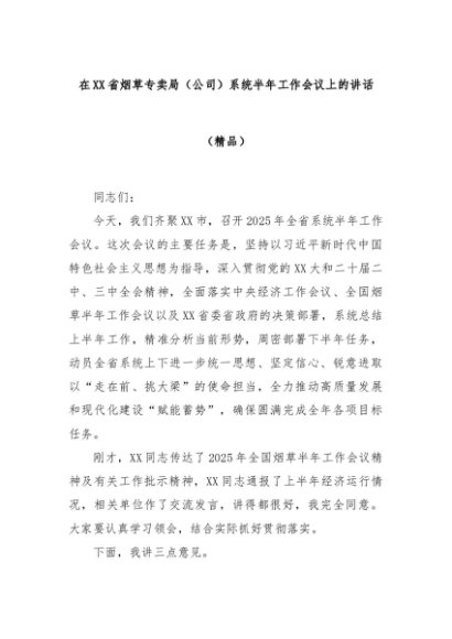【七哥公文】2025年:在XX省烟草专卖局(公司)系统半年工作会议上的讲话(精品)+更多免费公文+VX:QiGeGongWen2024