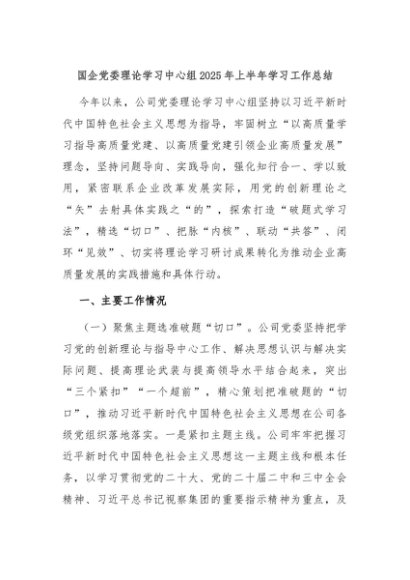 【七哥公文】2025年:国企党委理论学习中心组2025年上半年学习工作总结+更多免费公文+VX:QiGeGongWen2024