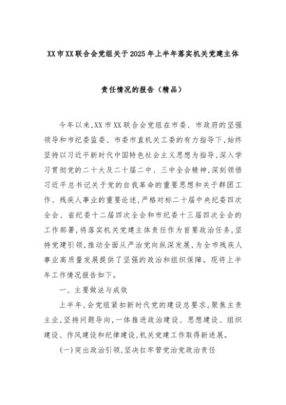 【七哥公文】2025年:XX市XX联合会党组关于2025年上半年落实机关党建主体责任情况的报告(精品)+更多免费公文+VX:QiGeGongWen2024