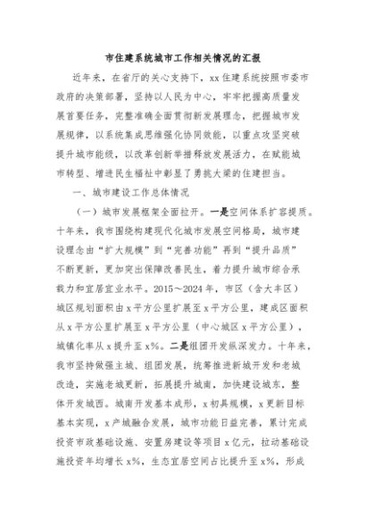 / 【七哥公文】2025年:市住建系统城市工作相关情况的汇报+更多免费公文+VX:QiGeGongWen2024