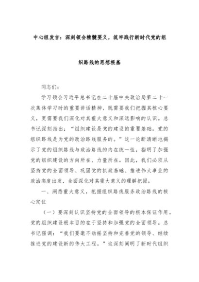 【七哥公文】2025年:中心组发言:深刻领会精髓要义,筑牢践行新时代党的组织路线的思想根基+更多免费公文+VX:QiGeGongWen2024