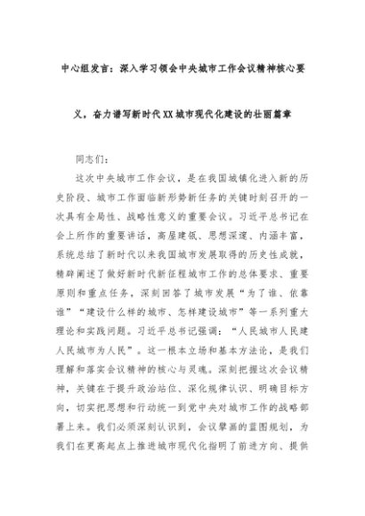 【七哥公文】2025年:中心组发言:深入学习领会中央城市工作会议精神核心要义,奋力谱写新时代XX城市现代化建设的壮丽篇章+更多免费公文+VX:QiGeGongWen2024
